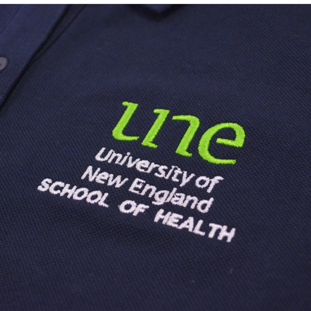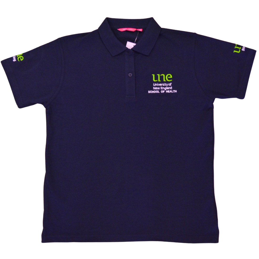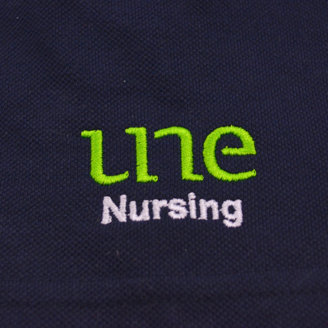 This navy polo will feature the three recently approved UNE nursing staff logos. Sizing is the same as the nursing student polo.